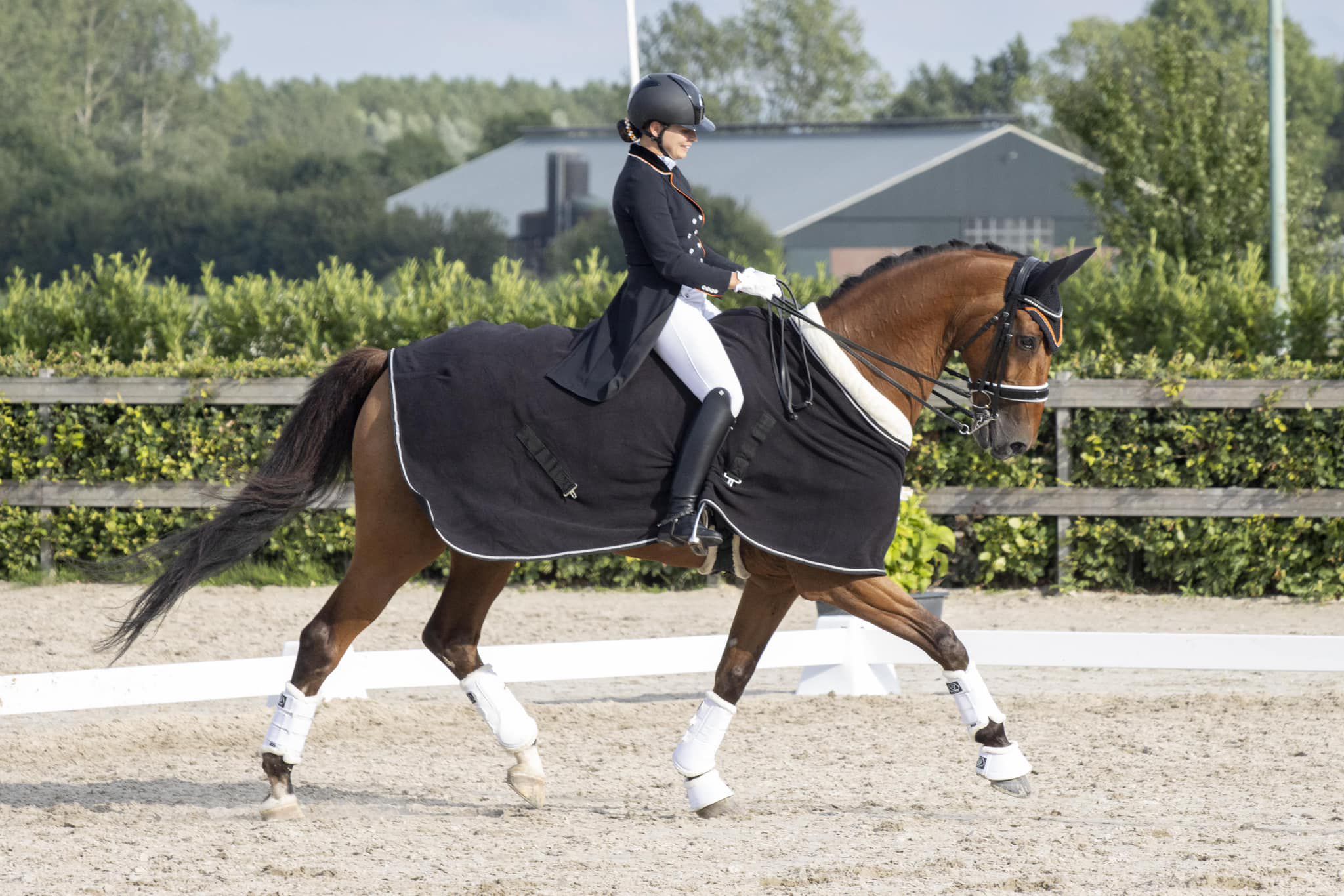 De trainingen van paarden verloopt met dezelfde rust, geduld en duidelijkheid als het beleren van onze eigen paarden. Ieder paard is anders en daarop zal de training worden aangepast. Het doel is wederom het ontwikkelen van een ‘happy athlete’ die met vertrouwen en zelfverzekerdheid met de ruiter samenwerkt.
